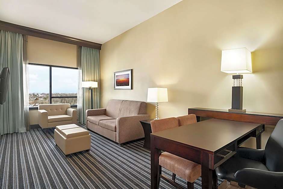 Rooms at Embassy Suites are equipped with all the essentials, including a flat-screen TV, microwave, refrigerator, and a sitting area. Whether you're traveling for business or pleasure, this hotel has you covered with a business center, room service, and a restaurant on-site. With free parking, a 24-hour front desk, and a variety of other amenities, your stay at Embassy Suites will be unforgettable.